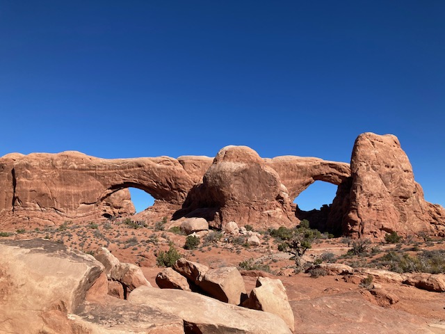 The government is shut down right now so, there was no timed entry and free admission. That made the park very busy for late fall. There are cool rock formations as soon as you drive to the top of the mesa. We nicknamed a few rocks that do not have official names such as Skull rock and Penis rock. First stop was Balanced rock which will eventually fall. The Windows are a set of two arches that are better viewed from the trail to Turret Arch. Across the parking lot from the Windows is Double Arch, my favorite in the park. It is a nice large arch with another arch about 90 degrees with both visible together. The final hike was the famous Delicate Arch. After already hiking a lot today, my sore knee could not handle the steep 3.2 miles to be up close to the arch, so I went to the lower viewpoint. Last stop was at Fiery Furnace. The sad part of this park was with no park rangers present meant tourists were climbing areas they were not supposed to including edges of the arches and narrow canyons that normally require a ranger guide.