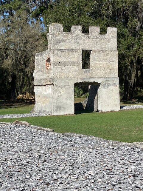 One of the older places for history that I have been to. This was the site of a planned walled English town and protective fort in 1736. It saw minor action against the Spanish in the fight for territory six years later and then most of the town burnt down in 1758. The only remnants are some foundations, part of the fort and the soldier barracks. The cement was made with oyster shells which are visible. The grounds are now mostly large trees dripping with Spanish moss.