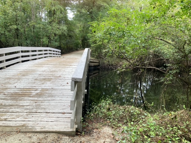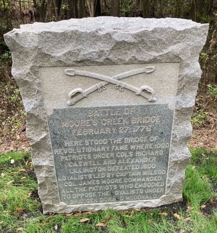 Site of the first Revolutionary war battle in North Carolina. Only about 31 people died leading to a victory for the Patriots, but it was important as it led to the southern rebels being able to join the armies of the north to fight the British. The battle took place at a bridge over Moores Creek. The bridge has been rebuilt an estimated 10 times but one of the walking trails leads over it and around the re-made earthen works. There are also several memorials on the grounds among the pine trees.