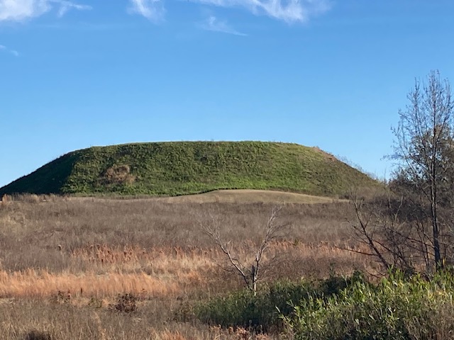 I found these mounds fascinating as clovis man spear points have been recovered here from 9000 BCE. The mounds were excavated in the 1930s and rebuilt. Different uses were discerned for the various mounds including temples, burial areas and gatherings. The Earth Mound has been recreated to allow entry. I also climbed on top of the Great Temple Mound which allowed a great view of downtown Macon. Modern man had a negative impact on the ancient site. The railroad went through the area on two different tracks in the 1800s and destroyed part of two of the largest mounds removing artifacts and skeletons in the process. An oak tree was obviously angry at me during my hike. Wind kicked up causing the tree to rain acorns on my head. A squirrel laughed hysterically at me from another tree.